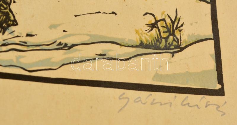 Gácsi Mihály (1926-1987): Jégverem, színes linó, papír, jelzett, 42×60... https://www.darabanth.com/hu/312-Gyorsarveres/312.0/Festmeny-mutargy-papirregiseg-egyeb/Festmenyek-es-grafikak~1/Gacsi-Mihaly-1926-1987-Jegverem-szines-lino-papir-jelzett-42C39760-5-cm~II1710786