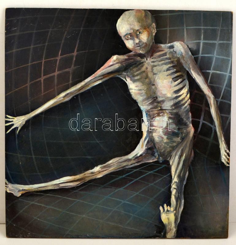 Leírás: Hajósy Mónika (1953-): Ülő alak, olaj, fa, jelzés nélkül, 55×55 cm