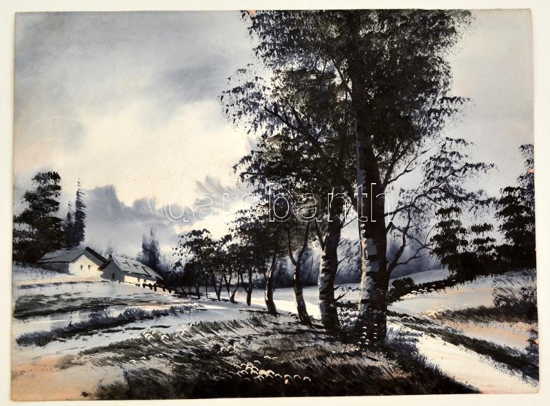 Leírás: Jelzés nélkül: Alkonyat, akvarell, papír, 25×34 cm