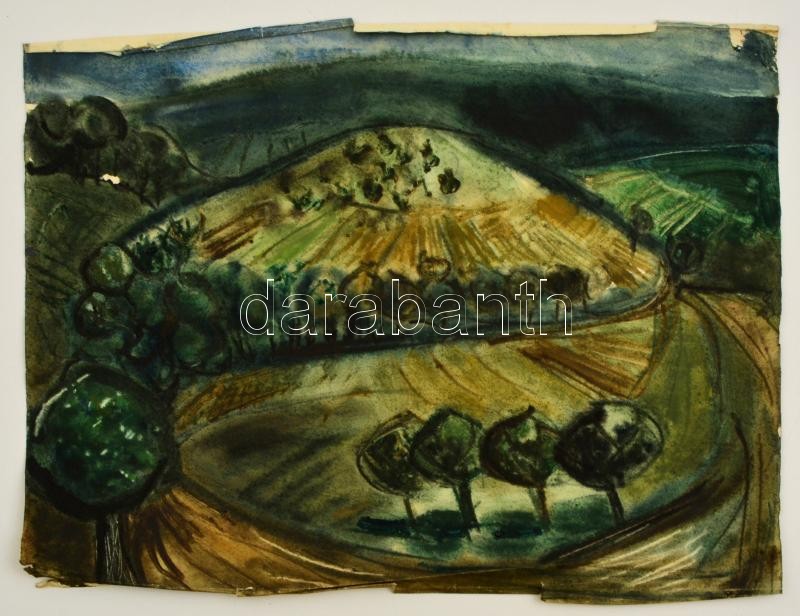 Leírás: Jelzés nélkül: Kompozíció. Akvarell,papír, szélei sérültek, 32×44 cm