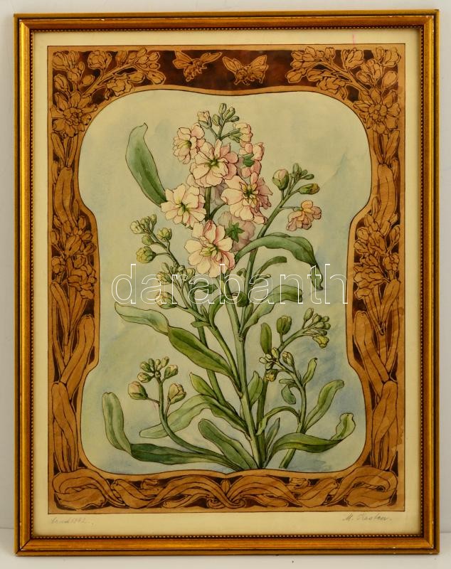 Leírás: Kasten jelzéssel (cca 1900): Virágcsokor. Akvarell, papír, üvegezett keretben, 48×37 cm