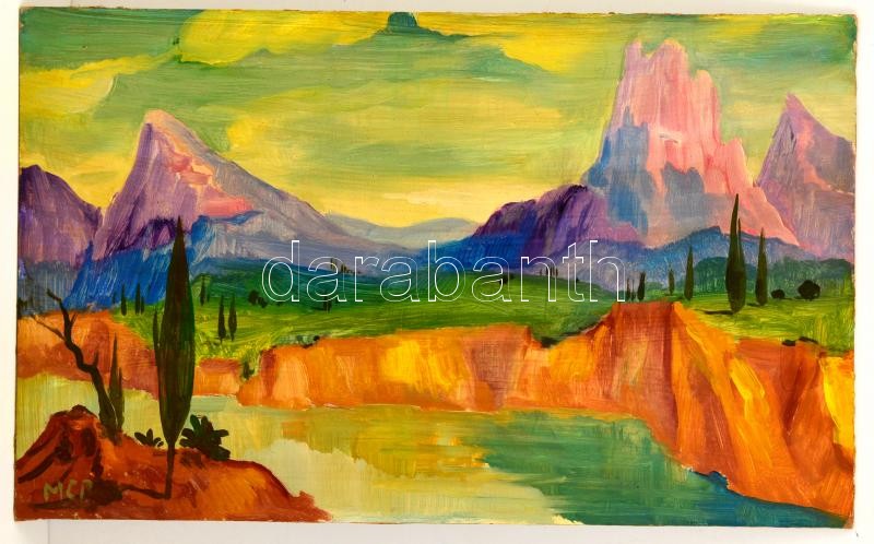 MCP jelzéssel: Hegyvidéki táj. Olaj, farost, 49×78 cm https://www.darabanth.com/hu/312-Gyorsarveres/312.0/Festmeny-mutargy-papirregiseg-egyeb/Festmenyek-es-grafikak~1/MCP-jelzessel-Hegyvideki-taj-Olaj-farost-49C39778-cm~II1708556