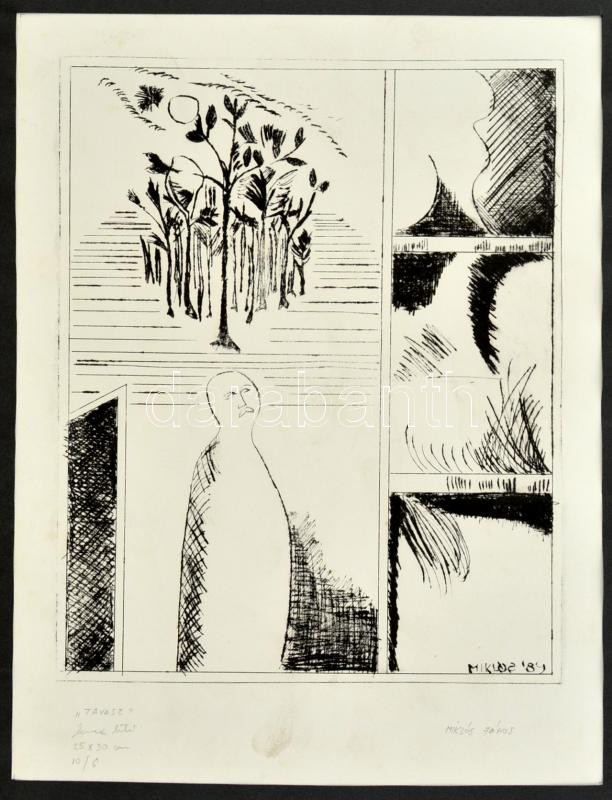 Miklós János (1949-): Tavasz. Rézkarc, papír, jelzett, 30×25 cm https://www.darabanth.com/hu/312-Gyorsarveres/312.0/Festmeny-mutargy-papirregiseg-egyeb/Festmenyek-es-grafikak~1/Miklos-Janos-1949-Tavasz-Rezkarc-papir-jelzett-30C39725-cm~II1594656