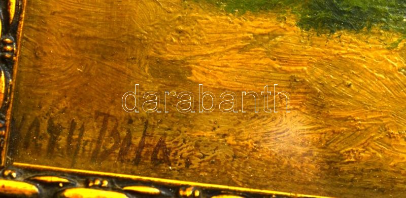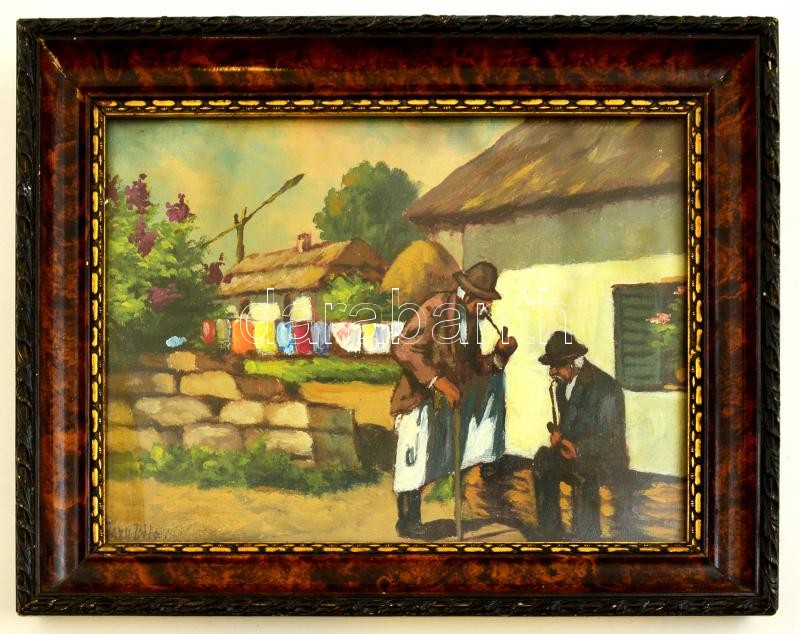 Leírás: Olvashatatlan jelzéssel: Szieszta, olaj, vászon, üvegezett fa keretben, 23,5×31 cm
