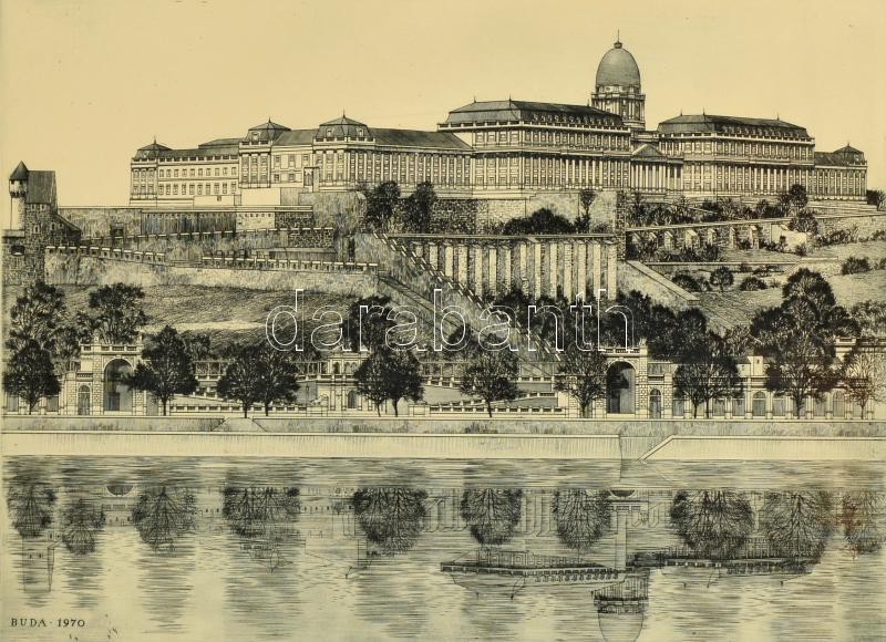 Leírás: Rékassy Csaba (1937-1989): Buda 1970. Rézkarc, papír, jelzett, üvegezett keretben, 29×40 cm