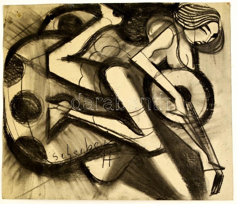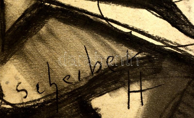 Leírás: Scheiber jelzéssel: Gitározó nő. Szén, karton, 39×33 cm