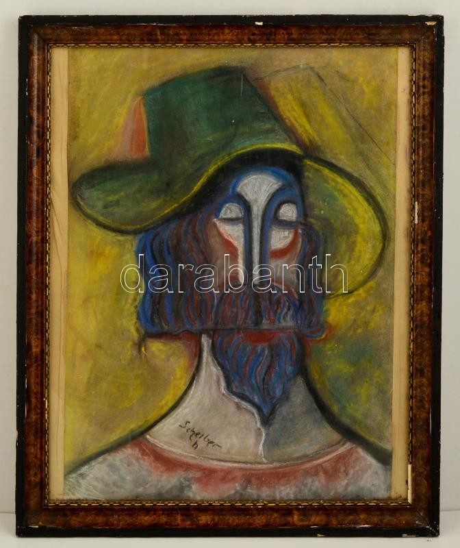 Leírás: Scheiber jelzéssel: Kalapos férfi. Pasztell, papír, üvegezett keretben, 62×45 cm