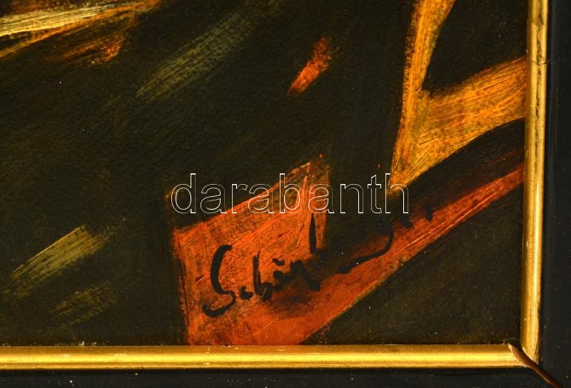 Leírás: Schönberger jelzéssel: Asztaltársaság. Olaj, farost, keretben, 70×48 cm