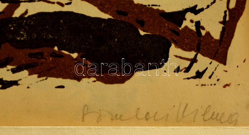 Leírás: Somlai Vilma (1938-2007): Pedig milyen vidáman indult, színes linó, papír, jelzett, paszpartuban, 35,5×30 cm