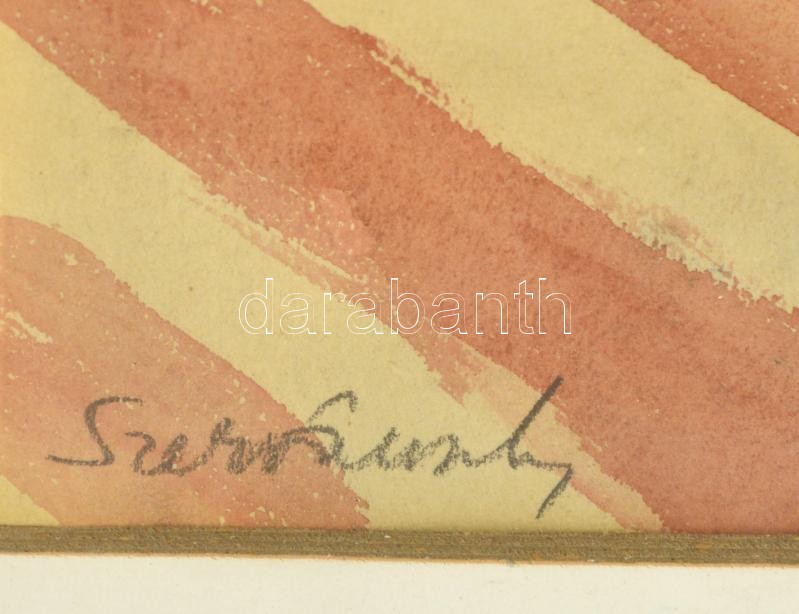 Leírás: Szervánszky Jenő (1906-2005): Virágcsendélet. Akvarell, papír, jelzett, üvegezett keretben, 33×24 cm
