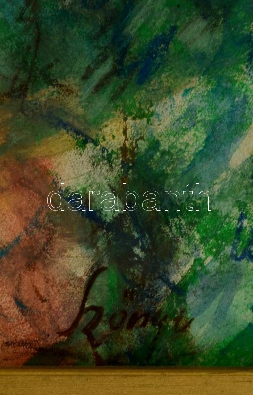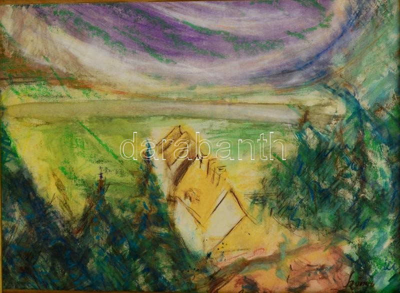Leírás: Szőnyi jelzéssel: Házak a völgyben. Vegyes technika, papír, üvegezett keretben, 29×41 cm