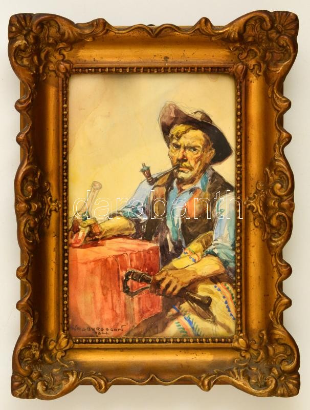 Leírás: Wallburg Egon/ Zórád Ernő (1911-2004): Kocsmában. Akvarell, papír-karton, jelzett, 22x15 cm Jó fa keretben. Enyhén foltos