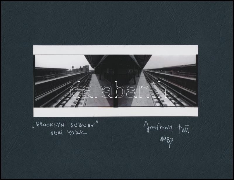 Leírás: 1983 Jankovszky György(1946-): New York, Brooklyn subway, feliratozva, kartonra kasírozva, pecséttel jelzett, 8x18 cm