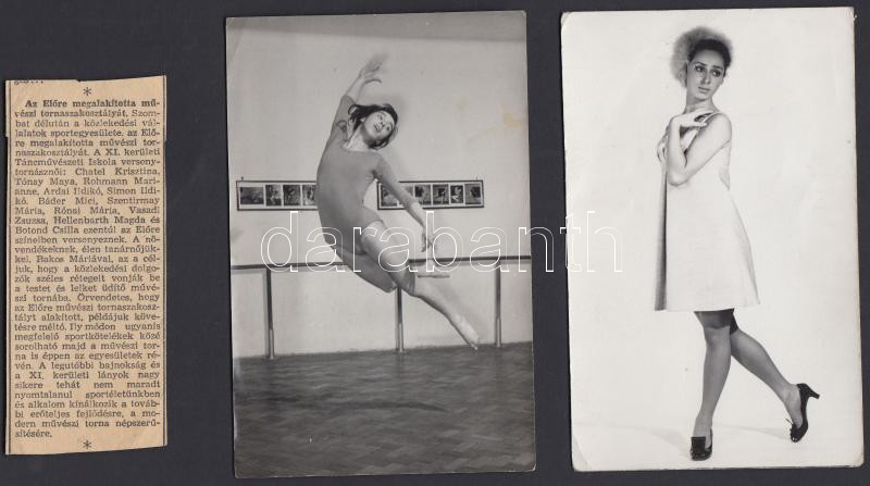 Leírás: Botond Csilla művészi tornászról készült fotók(6 db) + 1 db cikk, 9x14 cm