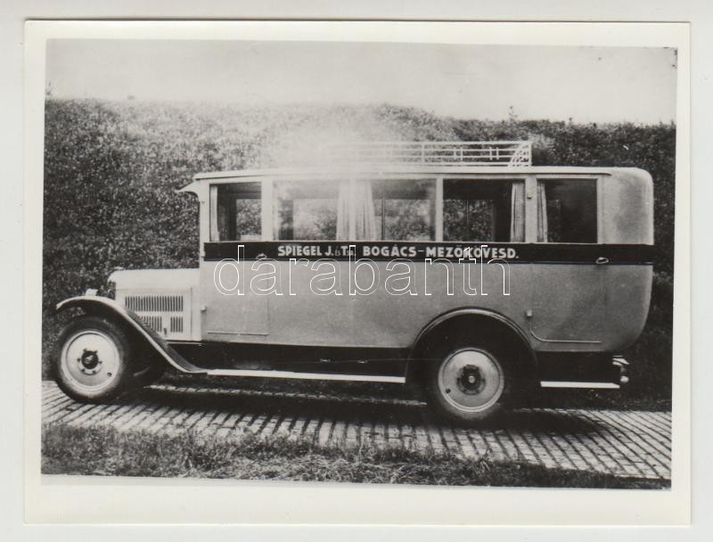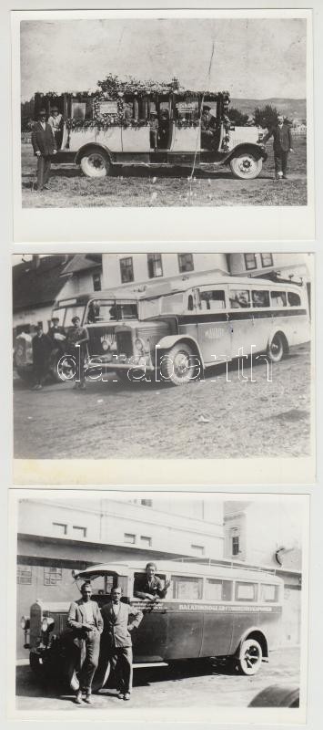 Személyszállító autóbusz-vállalatok járművei (Spiegel J. és Társa, Kleisz Nándor, MÁVAUT, stb.) Bogács-Mezőkövesd, Balatonboglár-Lengyeltóti, stb. vonalakon, 4 db fotó, későbbi előhívás, 9x12 cm