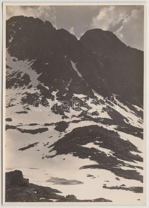 cca 1910 Magas-Tátra, Kis-tarpataki Öttó, Lomnici csúcs, Fecsketorony, Erdélyi Mór felvétele, hátulján feliratozva, 11,5×16 cm / cca 1910 Vysoké Tatry, Päť SpiÅ¡ských plies, Lomnický Å¡tÃt, PyÅ¡ný Å¡tÃt, vintage photo, with notes on its back, 11,5×16 cm