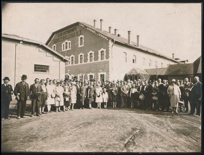 cca 1920 Első Kecskeméti Konzervgyár munkásai. Tablófotó. 24x18 cm https://www.darabanth.com/hu/312-Gyorsarveres/312.0/Festmeny-mutargy-papirregiseg-egyeb/Foto~20/cca-1920-Elso-Kecskemeti-Konzervgyar-munkasai-Tablofoto-24x18-cm~II1710667