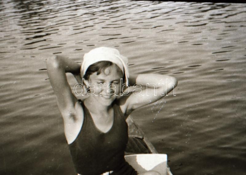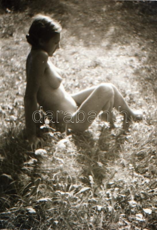 cca 1930 Aktfotók a lakásban és a természetben, 24 db szolidan erotikus, vintage negatív Fekete György (1904-1990) budapesti fényképész hagyatékából, 4x3 cm