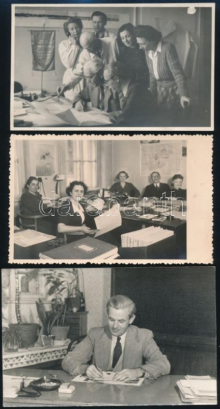 Leírás: cca 1950-1960 Irodisták, 3 db fotó, 9×14 cm
