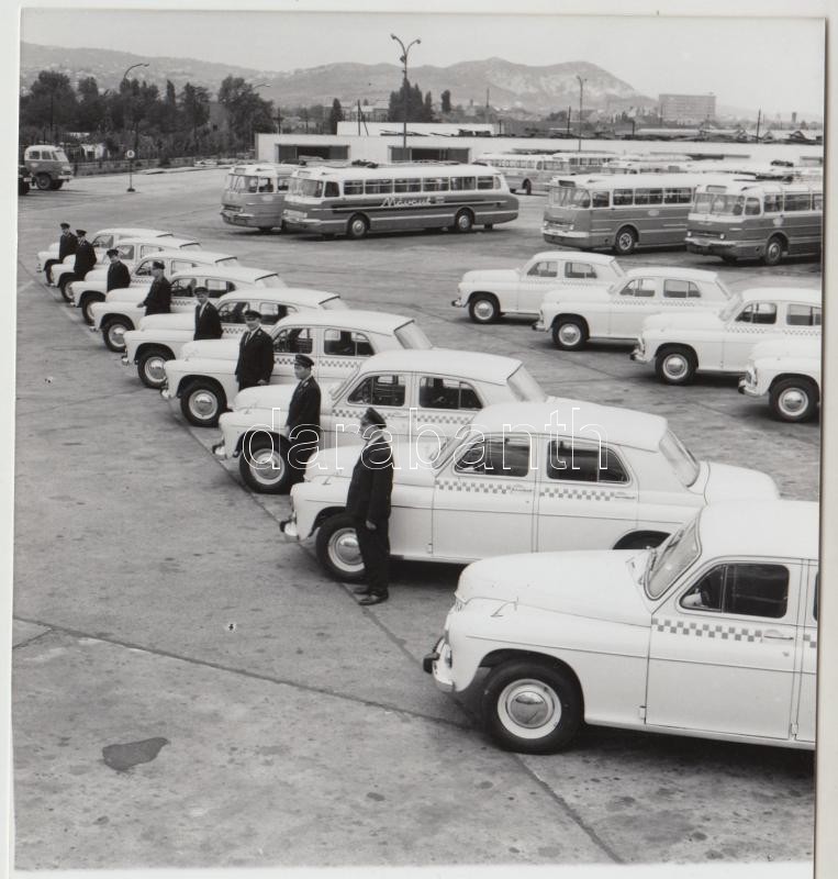 cca 1960 Budapest, Új taxik a telephelyen, háttérben MÁVAUT buszokkal,... https://www.darabanth.com/hu/312-Gyorsarveres/312.0/Festmeny-mutargy-papirregiseg-egyeb/Foto~20/cca-1960-Budapest-Uj-taxik-a-telephelyen-hatterben-MAVAUT-buszokkal-2-db-sajtofoto-18x13-c~II1711920