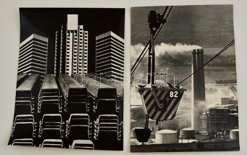cca 1971 Városi és ipari táj, Gebhardt György (1910-1993) budapesti fotóművész hagyatékából 2 db vintage fénykép, az egyik feliratozott, 39,5x30 cm és 39,5x28,5 cm
