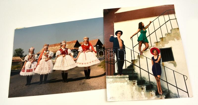 Leírás: cca 1994 Divatok és viseletek, 2 db feliratozott fotó Menesdorfer Lajos (1941-2005) budapesti fotóművész hagyatékából, 30x40 cm és 38,5x30 cm
