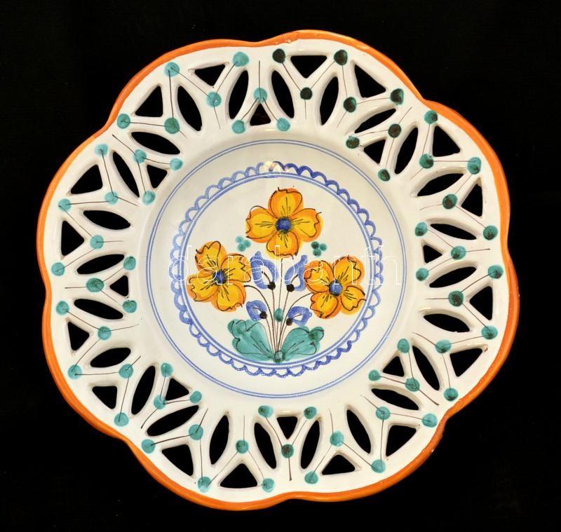 Leírás: Iparművész kerámia fali tál, kézzel festett, jelzett, mázhibával, d: 25 cm