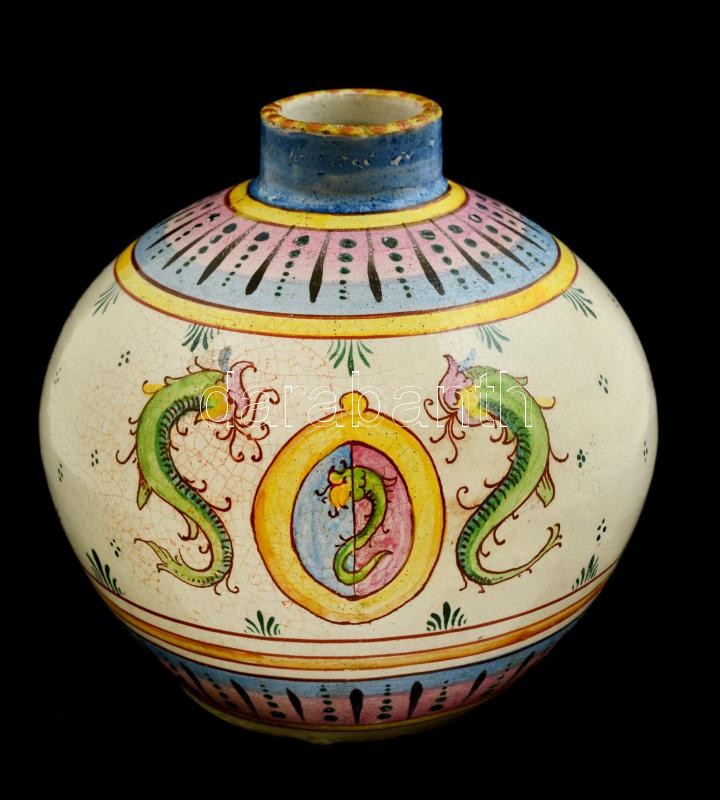 Váza, mázas kerámia, kézzel festett, jelzés nélkül, hibátlan, m: 12 cm https://www.darabanth.com/hu/312-Gyorsarveres/312.0/Festmeny-mutargy-papirregiseg-egyeb/Keramiak~6/Vaza-mazas-keramia-kezzel-festett-jelzes-nelkul-hibatlan-m-12-cm~II1647142