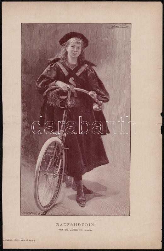1897 F.Simm: Radfahrerin, fametszet újságba készült nyomat, a Gartenla... https://www.darabanth.com/hu/312-Gyorsarveres/312.0/Festmeny-mutargy-papirregiseg-egyeb/Nyomtatvanyok~28/1897-FSimm-Radfahrerin-fametszet-ujsagba-keszult-nyomat-a-Gartenlaube-2897-9-mumelleklet~II1689207