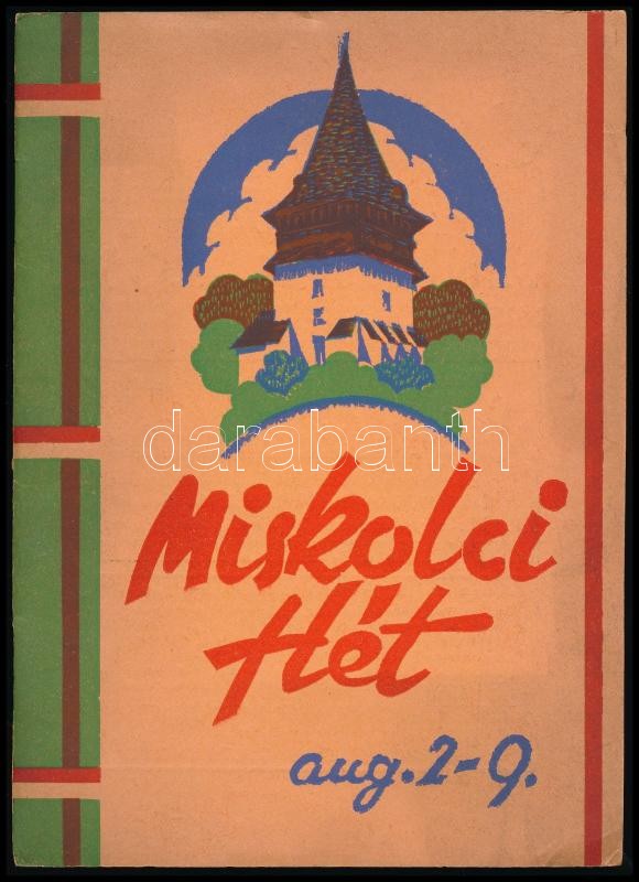 1936 Miskolci hét 1936 augusztus 2-9. Czókoly István grafikus illusztrációival. Miskolc, Miskolci Könyvnyomda Rt., 32 p. Fekete-fehér fotókkal, Miskolc térképével illusztrálva. Illusztrált papírkötés, korabeli reklámokkal.