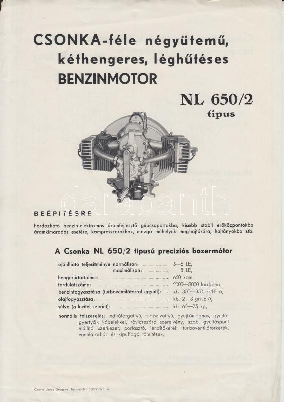 cca 1940 Csonka János gépgyára 4 db reklámnyomtatvány motorokról. https://www.darabanth.com/hu/312-Gyorsarveres/312.0/Festmeny-mutargy-papirregiseg-egyeb/Nyomtatvanyok~28/cca-1940-Csonka-Janos-gepgyara-4-db-reklamnyomtatvany-motorokrol~II1708505