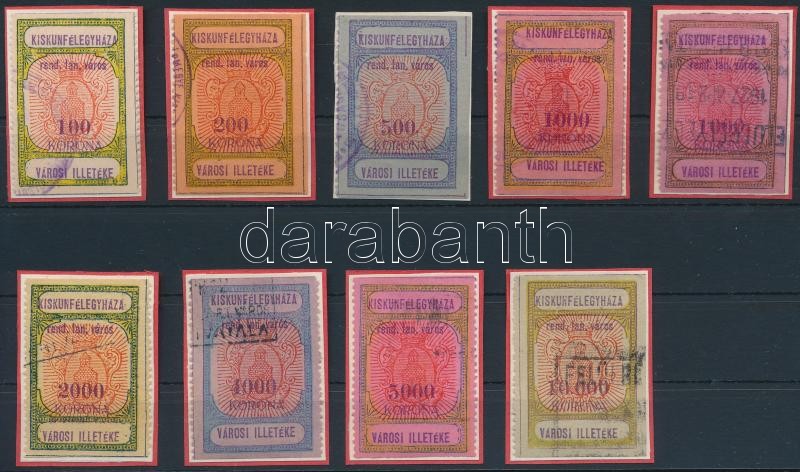 Leírás: 1924 Kiskunfélegyháza R.T.V. 29-38 sz. okirati illetékbélyeg (23.900)