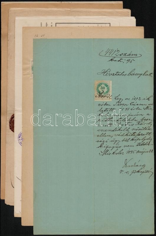 Leírás: cca 1860-1880 8 db okmánybélyeges okmány elfogazásokkal a bélyegeken