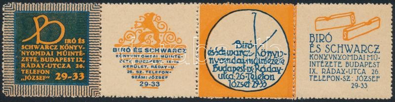 1910 Bíró és Schwarcz levélzáró 4 klf levélzáró 4-es csíkban https://www.darabanth.com/hu/312-Gyorsarveres/312.0/Festmeny-mutargy-papirregiseg-egyeb/Parafilatelia~14/1910-Biro-es-Schwarcz-levelzaro-4-klf-levelzaro-4-es-csikban~II1707620