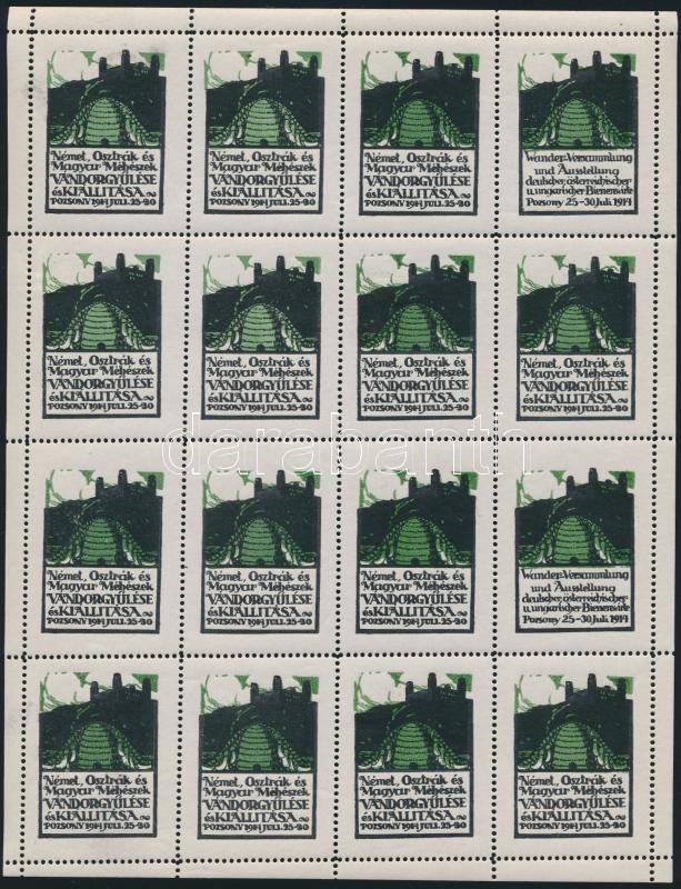 Leírás: 1914 Német, Osztrák és Magyar Méhészek Vándorgyűlése és Kiállítása Pozsony levélzáró 16-os ív, zöld-fekete