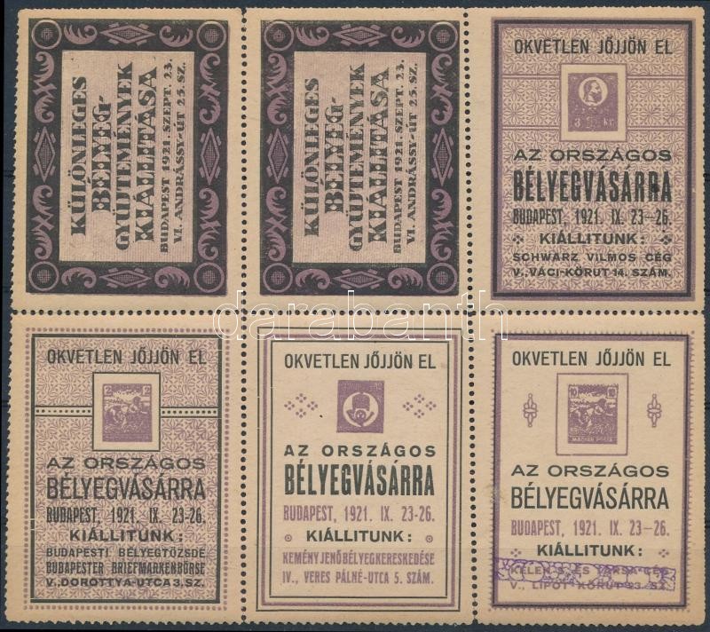 1921 Országos bélyegvásár levélzáró hatostömb, szürkéslila https://www.darabanth.com/hu/312-Gyorsarveres/312.0/Festmeny-mutargy-papirregiseg-egyeb/Parafilatelia~14/1921-Orszagos-belyegvasar-levelzaro-hatostomb-szurkeslila~II1707015