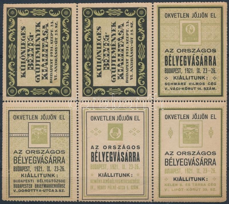1921 Országos bélyegvásár levélzáró hatostömb, zöld https://www.darabanth.com/hu/312-Gyorsarveres/312.0/Festmeny-mutargy-papirregiseg-egyeb/Parafilatelia~14/1921-Orszagos-belyegvasar-levelzaro-hatostomb-zold~II1707013