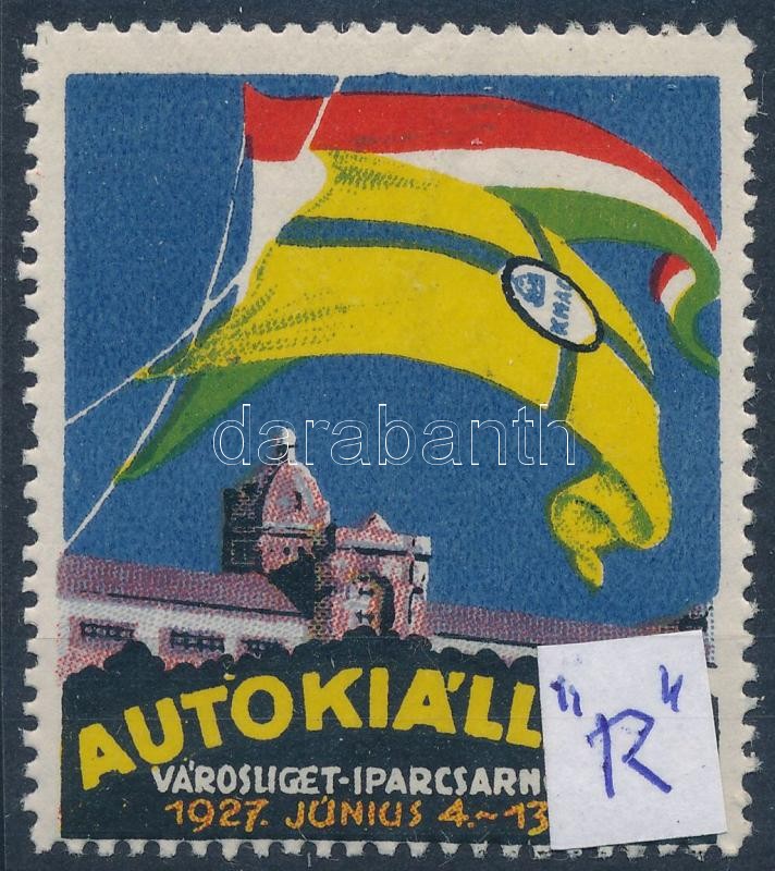 1927 Autókiállítás városliget-iparcsarnok levélzáró R https://www.darabanth.com/hu/312-Gyorsarveres/312.0/Festmeny-mutargy-papirregiseg-egyeb/Parafilatelia~14/1927-Autokiallitas-varosliget-iparcsarnok-levelzaro-R~II1707658