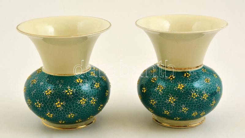 Leírás: Alka Kunst Kronach váza pár ( 2 db), részben kézzel festett, jelzett, kopott aranyozás, m:11 cm (2×)