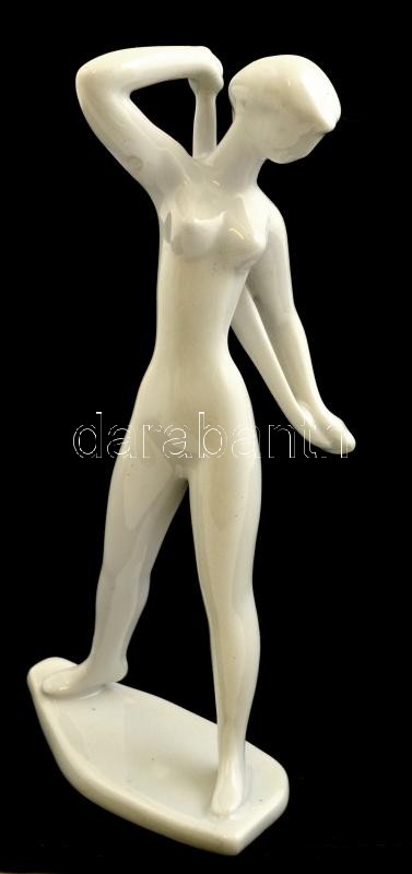 Leírás: Drasche törölköző női akt, fehér mázas porcelán figura, jelzett, hibátlan, m: 19 cm