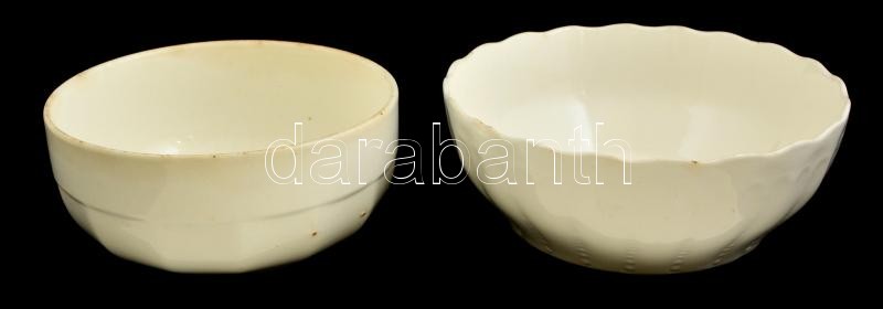 Leírás: Gránit fehér tál, 2 db, jelzett, kopásnyomokkal, d: 20 és 23 cm