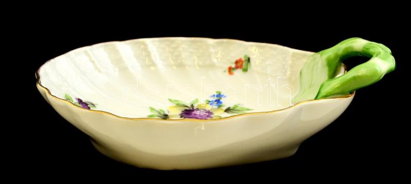 Leírás: Herendi kagylós füles tálka, kézzel festett, jelzett (koronás), hibátlan, 16×12 cm