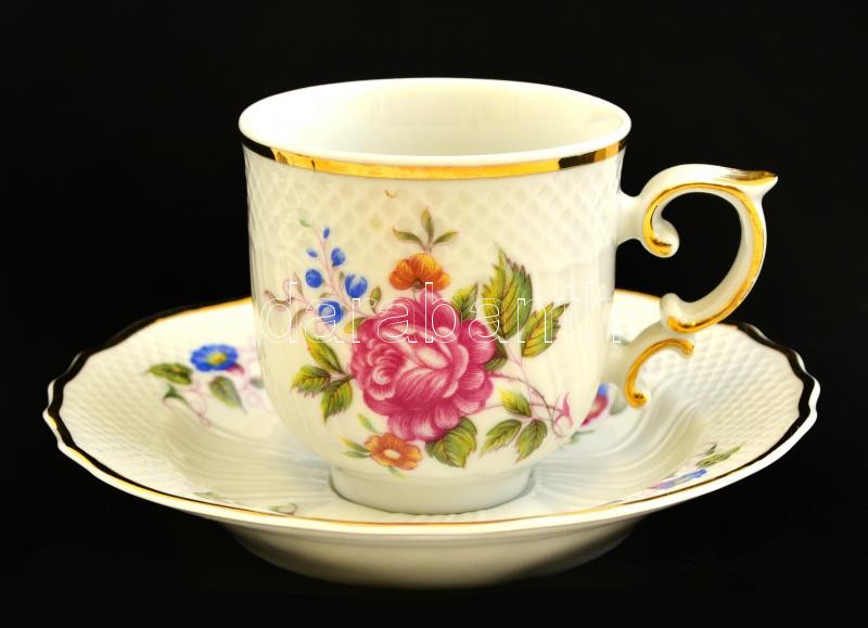 Leírás: Hollóházi porcelán virágmintás csésze + alj, matricás, hibátlan, jelzett