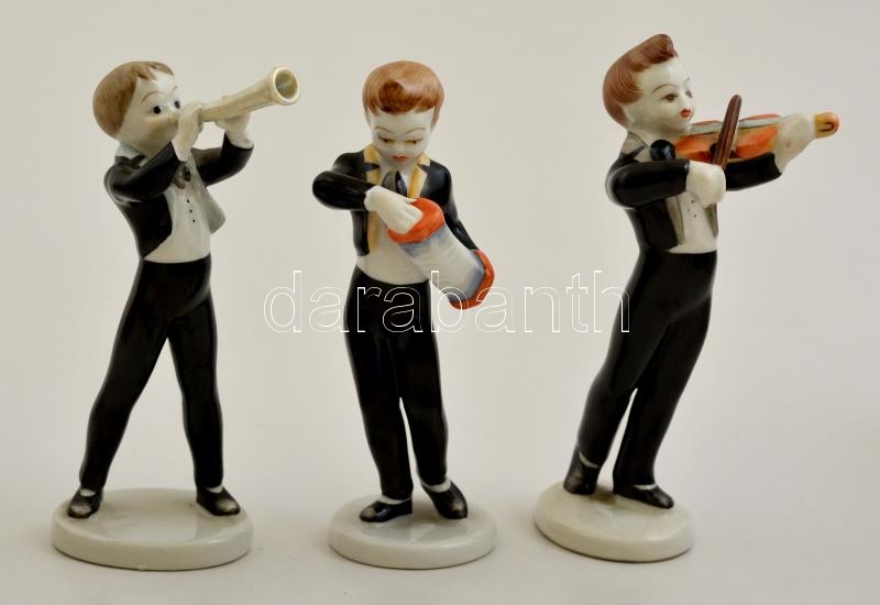 Leírás: Hollóházi zenélő kisfiúk ( 3 db), kézzel festett, jelzett, hibátlan m: 14 cm ( 3×)