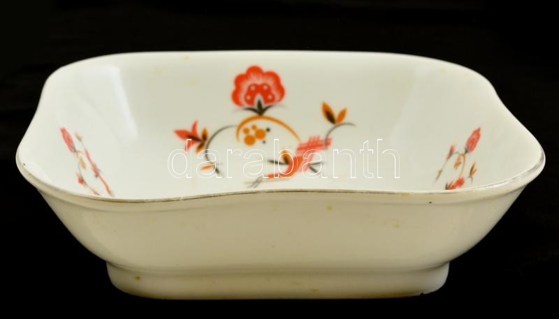 Leírás: Zsolnay art deco kínáló, matricás, jelzett, kopott, 21,5×21,5 cm, m:6 cm