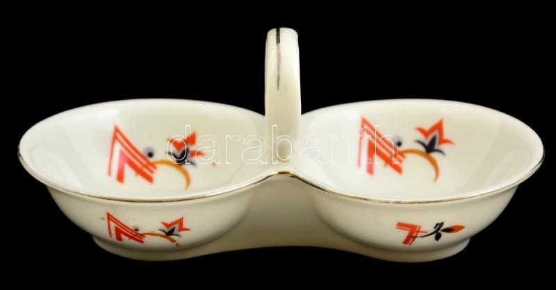 Leírás: Zsolnay art deco só-bors tartó, matricás, jelzett, kopott, 15×8 cm, m:6 cm