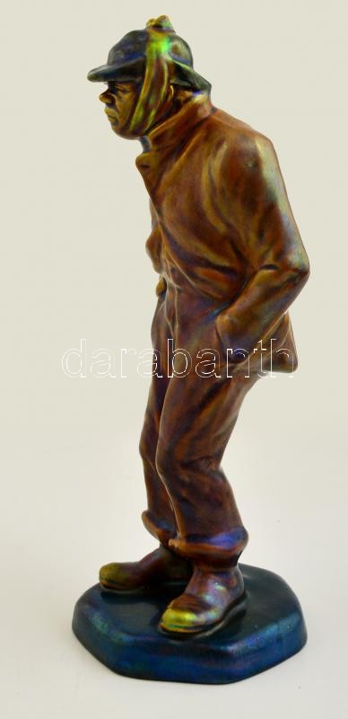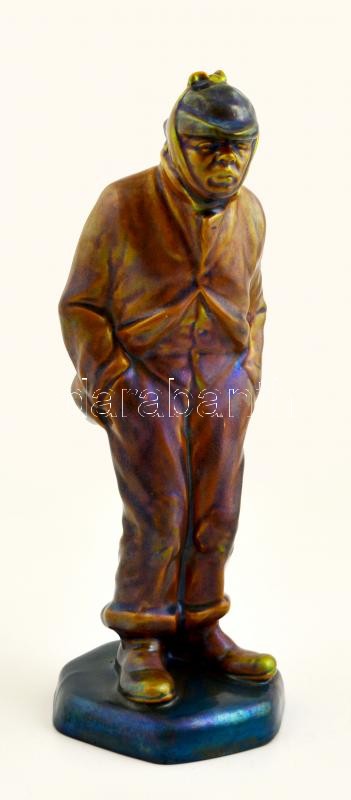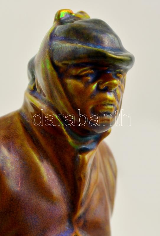 Leírás: Zsolnay csavargó, eozinmázas porcelánfajansz, jelzett (körpecsét cca 1920) tervező:Kapás Nagy Mihály, hibátlan, m:26 cm