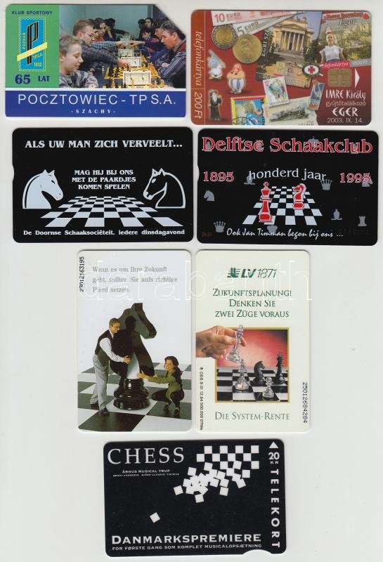 Leírás: 1992-2005 8 db használt telefonkártya, 1 magyar, a többi német, a külföldiek sakk motívummal, az egyik telefonkártya sarka hiányzik