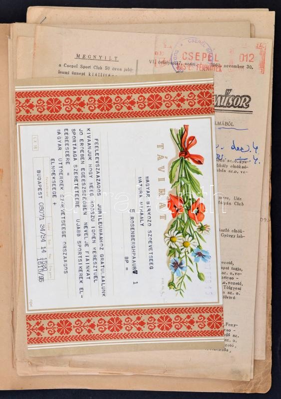 1941-1944 Magyar Birkózó Szövetség leigazolt birkózóinak anyaga. Számos eredeti fotó, meccsek leírása, a különféle egyesületek felsorolása, főtitkári kinevezések. Érdekes anyag