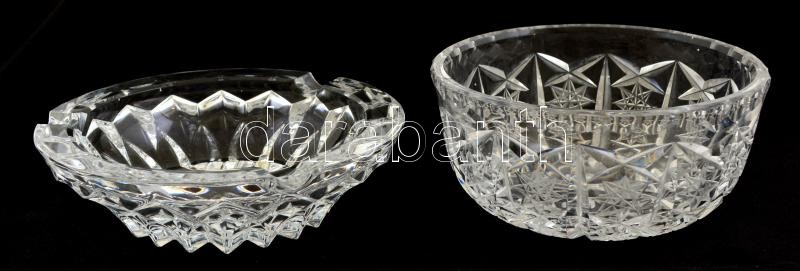 Leírás: Üveg hamutartó és tálka, formába öntött és csiszolt, metszett, hibátlan, d: 14 és 12 cm